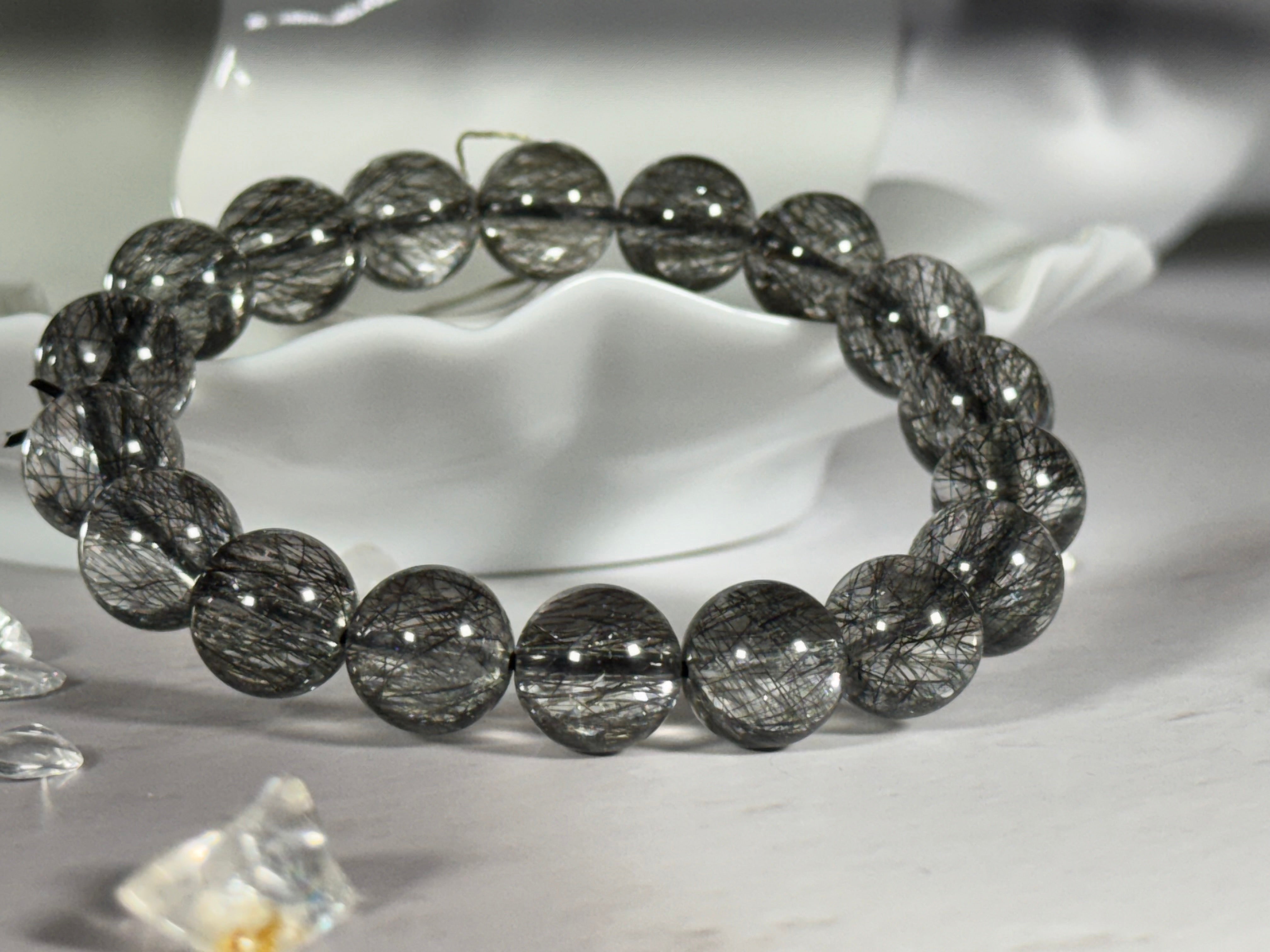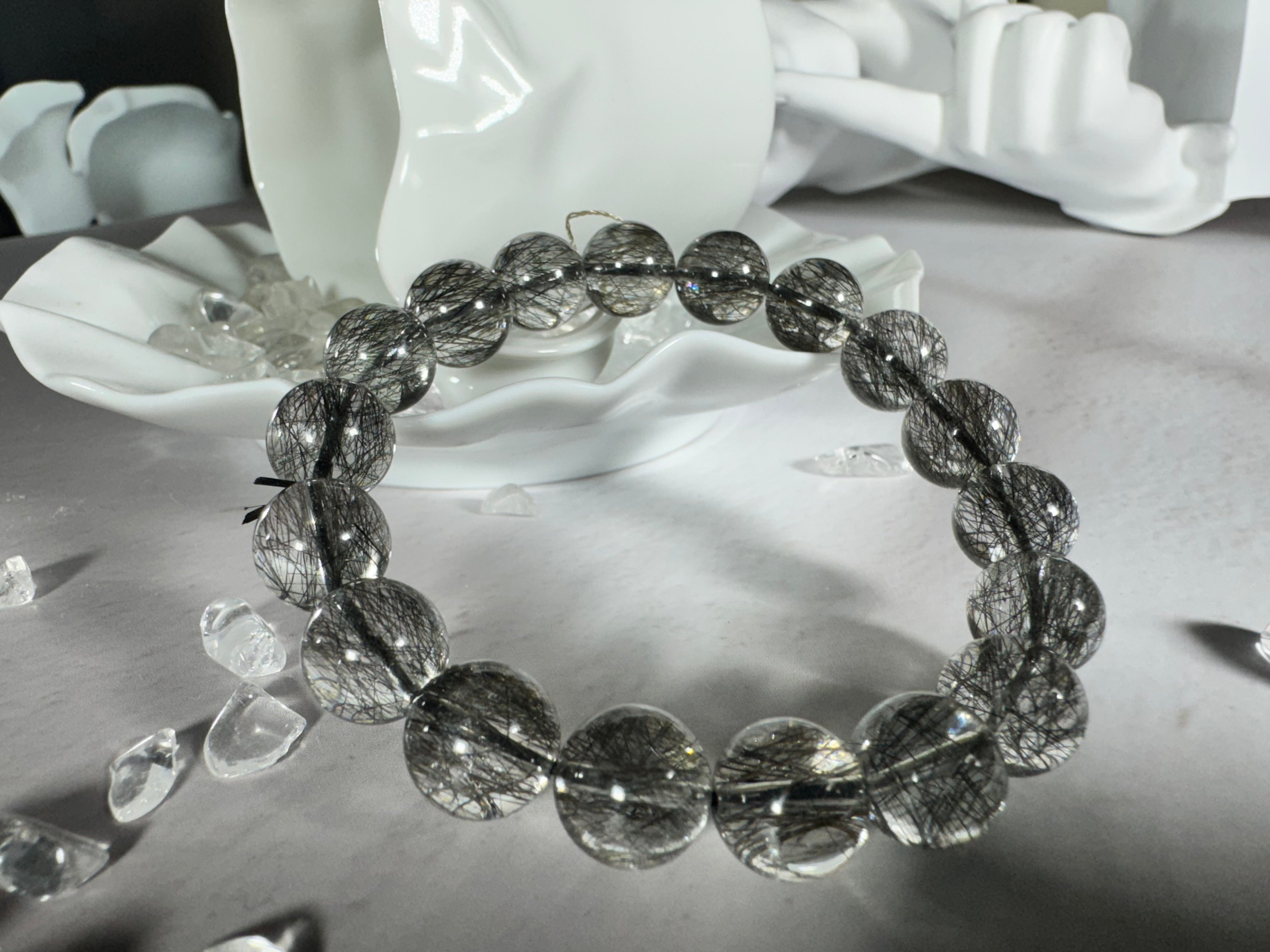 The Black Rutile Quartz Bracelet, known for its unique black needle-like inclusions, exudes a mysterious and powerful aesthetic and is believed to offer multiple benefits. Firstly, black rutile quartz possesses strong protective energy, helping to shield the wearer from negative energies and external disturbances, creating an emotional barrier. Secondly, it boosts confidence and determination, empowering the wearer with the courage to face challenges, making it especially suitable for individuals in high-pressure environments. Black rutile quartz is also thought to purify one’s energy field, bringing inner peace and stability. Wearing a Black Rutile Quartz bracelet is said to enhance focus and judgment, aiding in clearer thinking and decision-making. Overall, the Black Rutile Quartz Bracelet is ideal for individuals seeking to protect their energy, boost confidence, and improve focus.