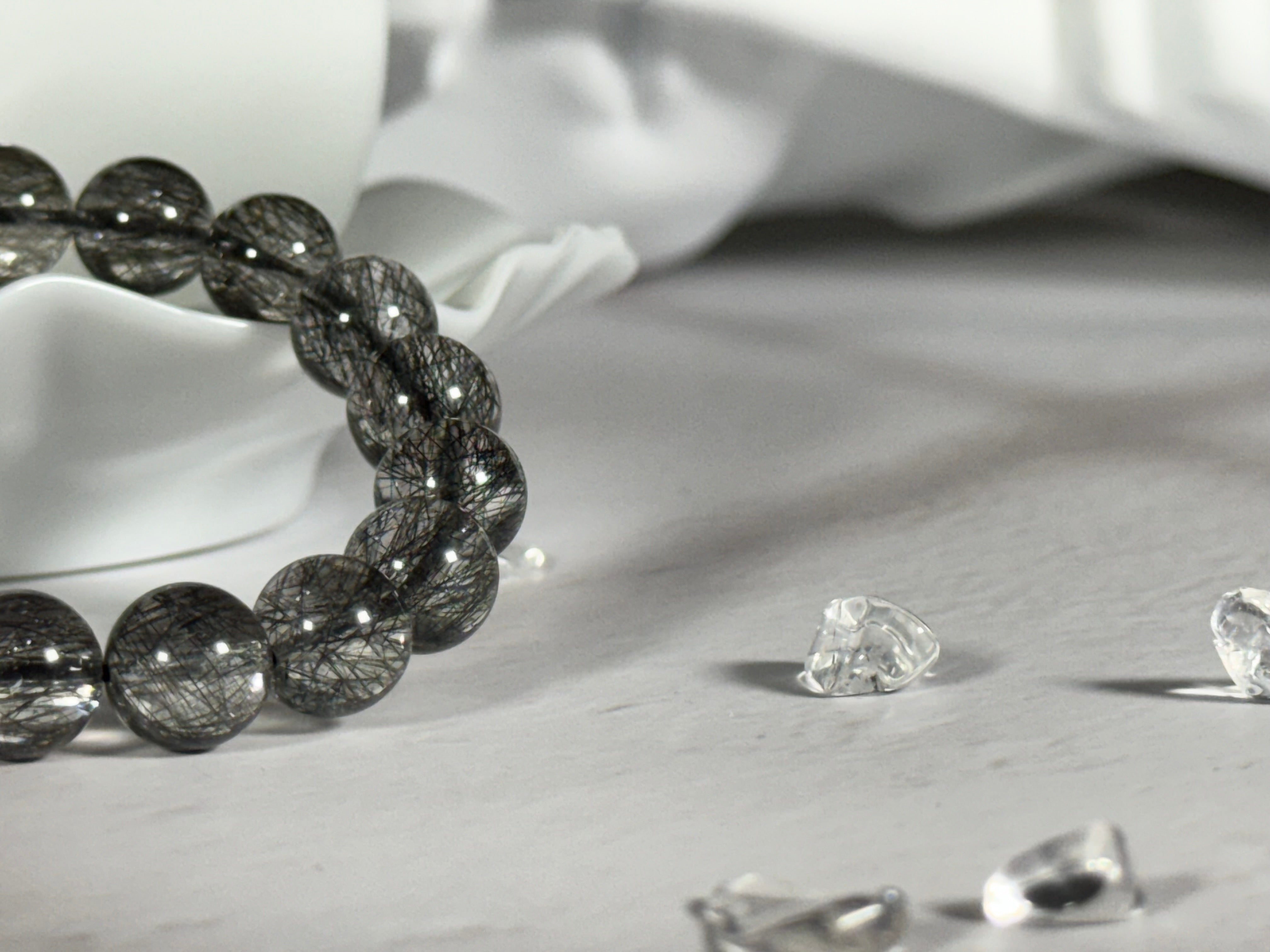 黑发晶手链因其内部的黑色针状内含物而独具特色,外观神秘且充满力量,被认为具有多重益处。首先,黑发晶具有强大的保护能量,能够抵御负面能量和外界的干扰,帮助佩戴者建立起情绪上的防护屏障。其次,它有助于增强自信与决心,使佩戴者更具勇气去面对挑战,特别适合需要在高压环境中工作的群体。黑发晶还被认为可以净化个人的能量场,带来内心的平静与稳定。佩戴黑发晶手链据说能够提升专注力和判断力,有助于更清晰地思考和决策。总体而言,黑发晶手链适合那些希望保护自身能量场、增强自信心并提高专注力的人佩戴。