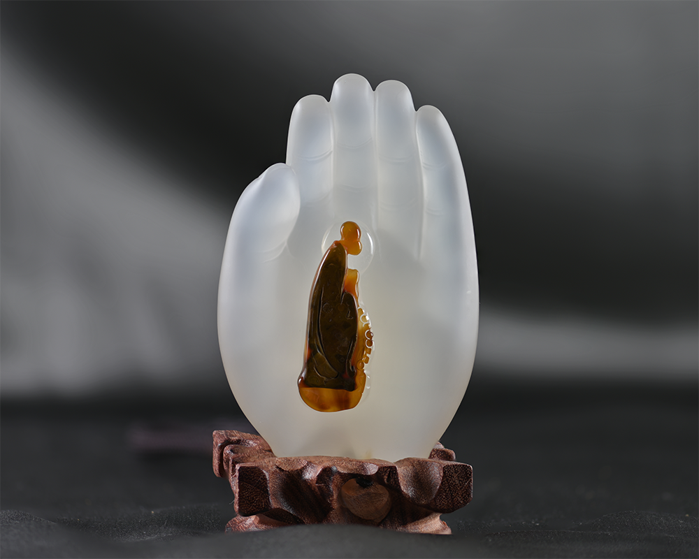 Embark on a journey of serenity and blessings with our Tranquil Buddha Palm Blessings Palmstone Agate Therapeutic Bracelet. This exquisite piece features a transparent ivory agate stone pendant adorned with a delicately carved blessing Buddha, gracefully surrounded by beads and the timeless symbol of purity – the lotus. Each element intricately carved into this piece serves as a source of inspiration and therapeutic comfort.