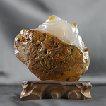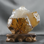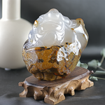 Embark on a journey of serenity and blessings with our Zen Master Laughing Buddha Opaline Pearl Agate Sculpture. This exquisite piece features a transparent Opaline Pearl agate stone adorned with a lustrous display of complex formations beneath the delicately carved blessing Buddha, gracefully surrounded by the timeless symbol of prosperity. Each element intricately carved into this piece serves as a source of inspiration and therapeutic comfort.