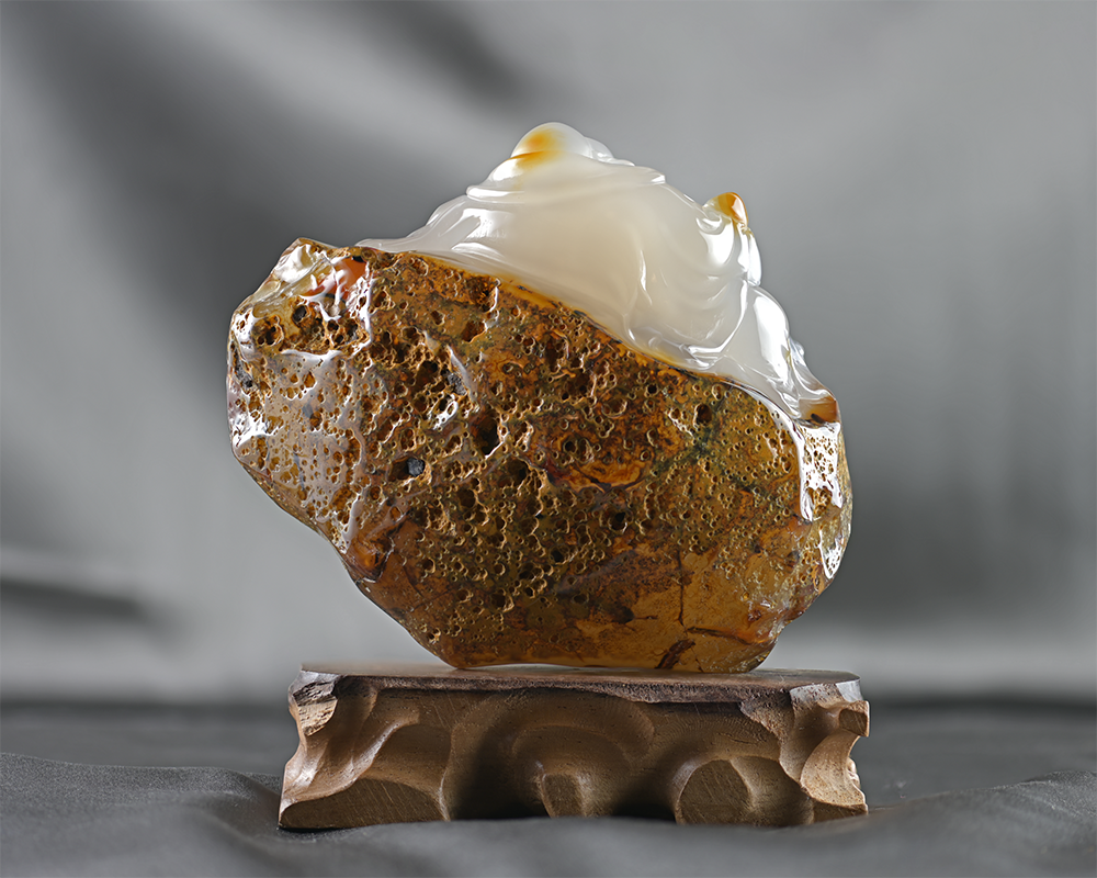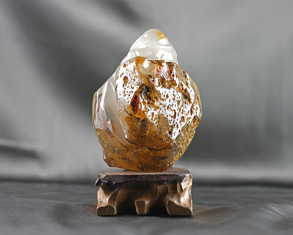 The transparent ivory agate, housing volcanic water from ancient times, becomes a conduit for harmony and rejuvenation. As you display the Zen Master Laughing Buddha Opaline Pearl Agate Sculpture in the setting of your home, experience the soothing therapeutic energy that emanates from the natural infusion within. The connection fosters mindfulness and relaxation, creating a sense of calm amid life's demands.